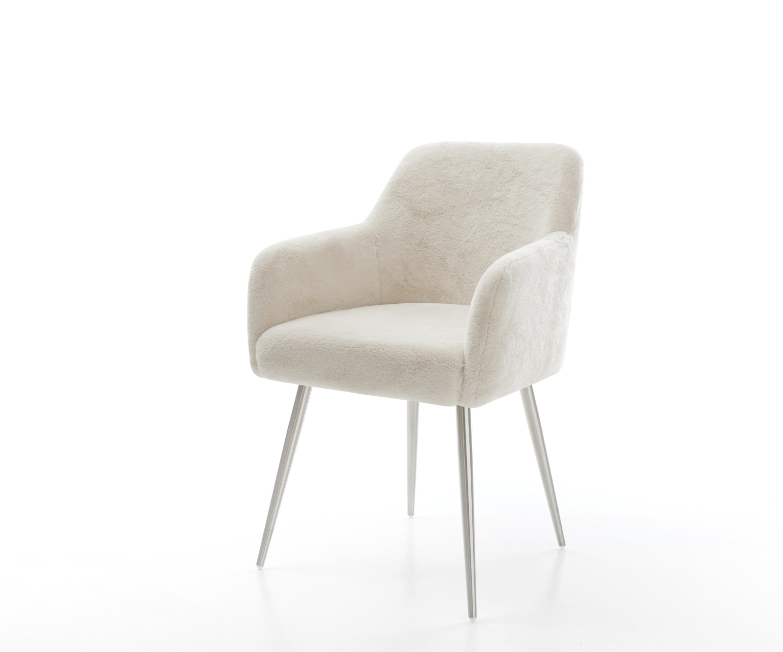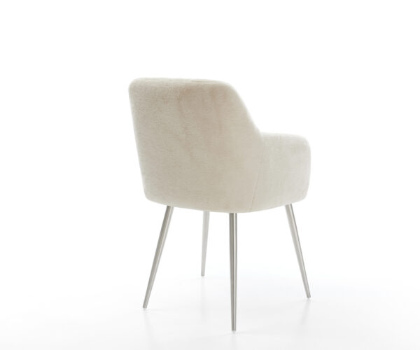 Ušlechtilý plyšový potah v jemné krémově bílé barvě dodává židli obzvlášť elegantní charisma. Měkký povrch nabízí nejvyšší pohodlí při sezení – ideální pro moderní jídelní a obytné prostory s kvalitním vybavením.