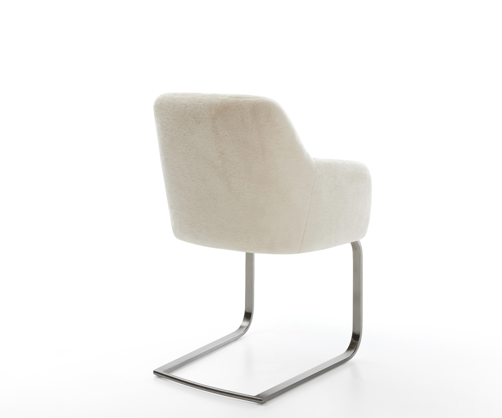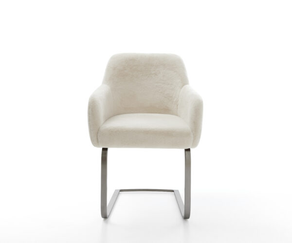 Ušlechtilý plyšový potah v jemné krémově bílé barvě dodává židli zvlášť elegantní charisma. Měkký povrch nabízí nejvyšší komfort sezení – ideální pro moderní jídelní a obytné prostory s kvalitním vybavením.