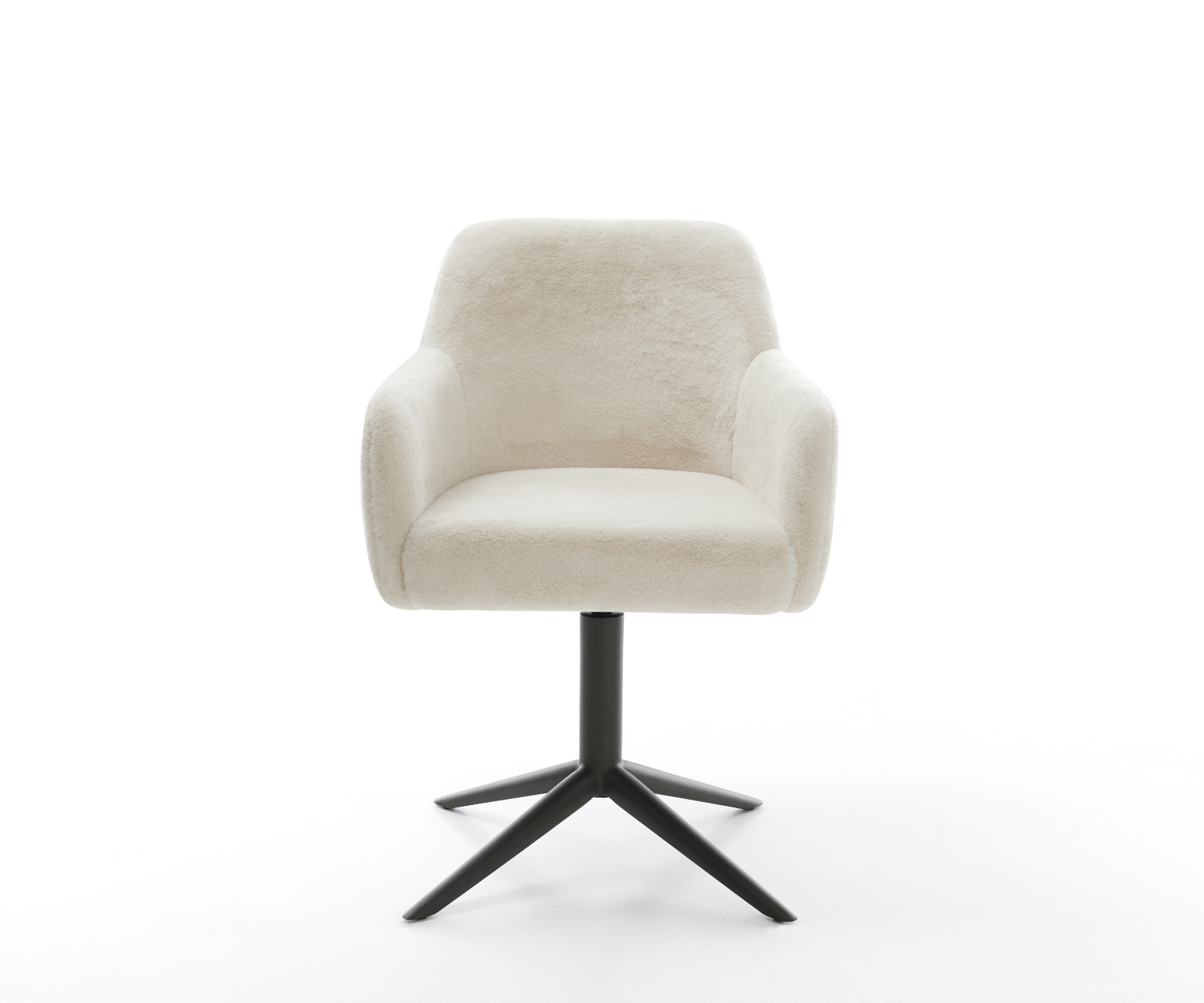 Ušlechtilý plyšový potah v jemné krémově bílé barvě dodává židli obzvlášť elegantní charisma. Měkký povrch nabízí maximální komfort sezení – ideální pro moderní jídelní a obytné prostory s kvalitním vybavením.