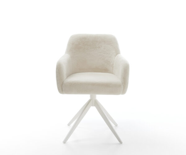 Ušlechtilý plyšový potah v jemné krémově bílé barvě dodává židli obzvlášť elegantní vzhled. Měkký povrch nabízí nejvyšší komfort sezení – ideální pro moderní jídelní a obytné prostory s kvalitním vybavením.