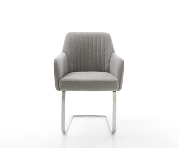 Robustní strukturální látka v jemně šedé barvě není jen odolná, ale zajišťuje také decentní a stylový vzhled. Ideální pro intenzivně využívané jídelní prostory s nároky na design a každodenní použitelnost.