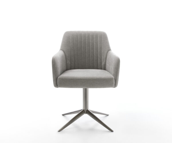 Robustní strukturální látka v jemné šedé barvě není jen odolná, ale zajišťuje také decentní a stylový vzhled. Ideální pro intenzivně využívané jídelní prostory s nároky na design a každodenní použitelnost.