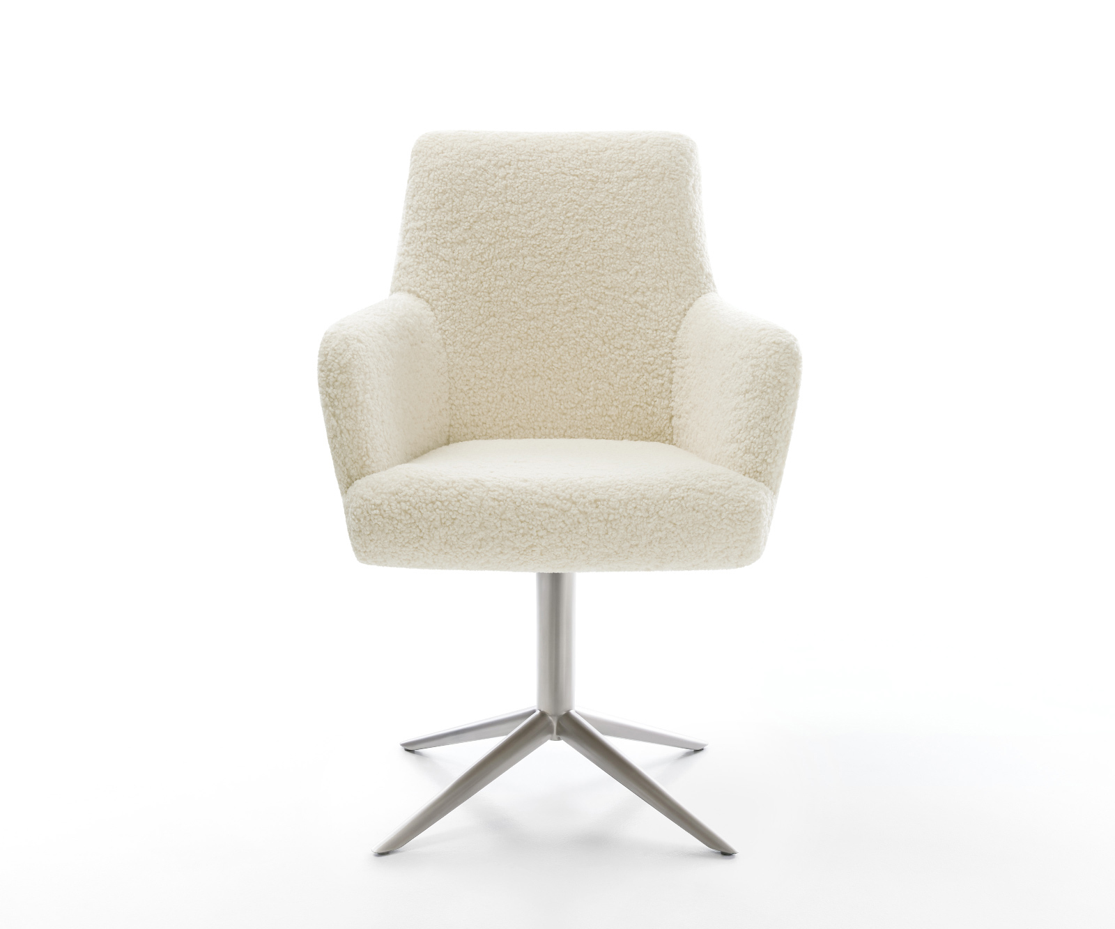 Potah z hebké plyšové látky Teddy v béžové barvě zajišťuje obzvlášť příjemný pocit při sezení. Měkká látka přináší ke stolu útulnost a styl – ideální pro domácí atmosféru.