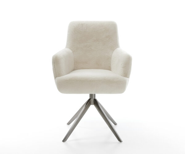 Jídelní židle Heira s područkami plyš krémově bílá – stuhl systém od Delife