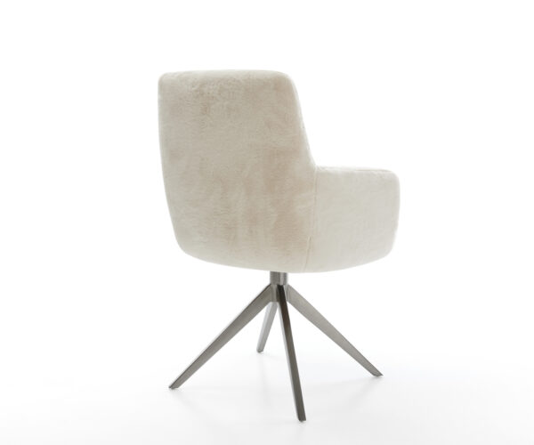Luxusní plyšový potah v jemné krémově bílé barvě dodává židli obzvlášť elegantní charisma. Měkký povrch nabízí nejvyšší pohodlí při sezení – ideální pro moderní jídelní a obytné prostory s kvalitním vybavením.
