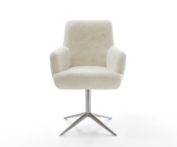 Jídelní židle Heira s područkami plyš krémově bílá – stuhl systém od Delife