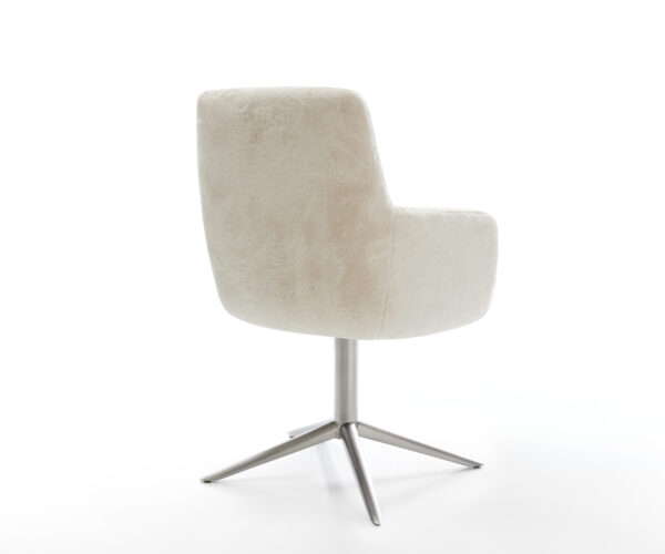 Luxusní plyšový potah v jemné krémově bílé barvě dodává židli obzvlášť elegantní charisma. Měkký povrch nabízí nejvyšší pohodlí při sezení – ideální pro moderní jídelní a obytné prostory s kvalitním vybavením.
