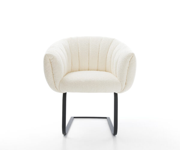 Elegantní bouclé látka je obzvlášť měkká a příjemná na dotek, zároveň však odolná a snadno udržovatelná. Září v teplém bílém odstínu a v každé jídelně vytváří nadčasově krásné akcenty.