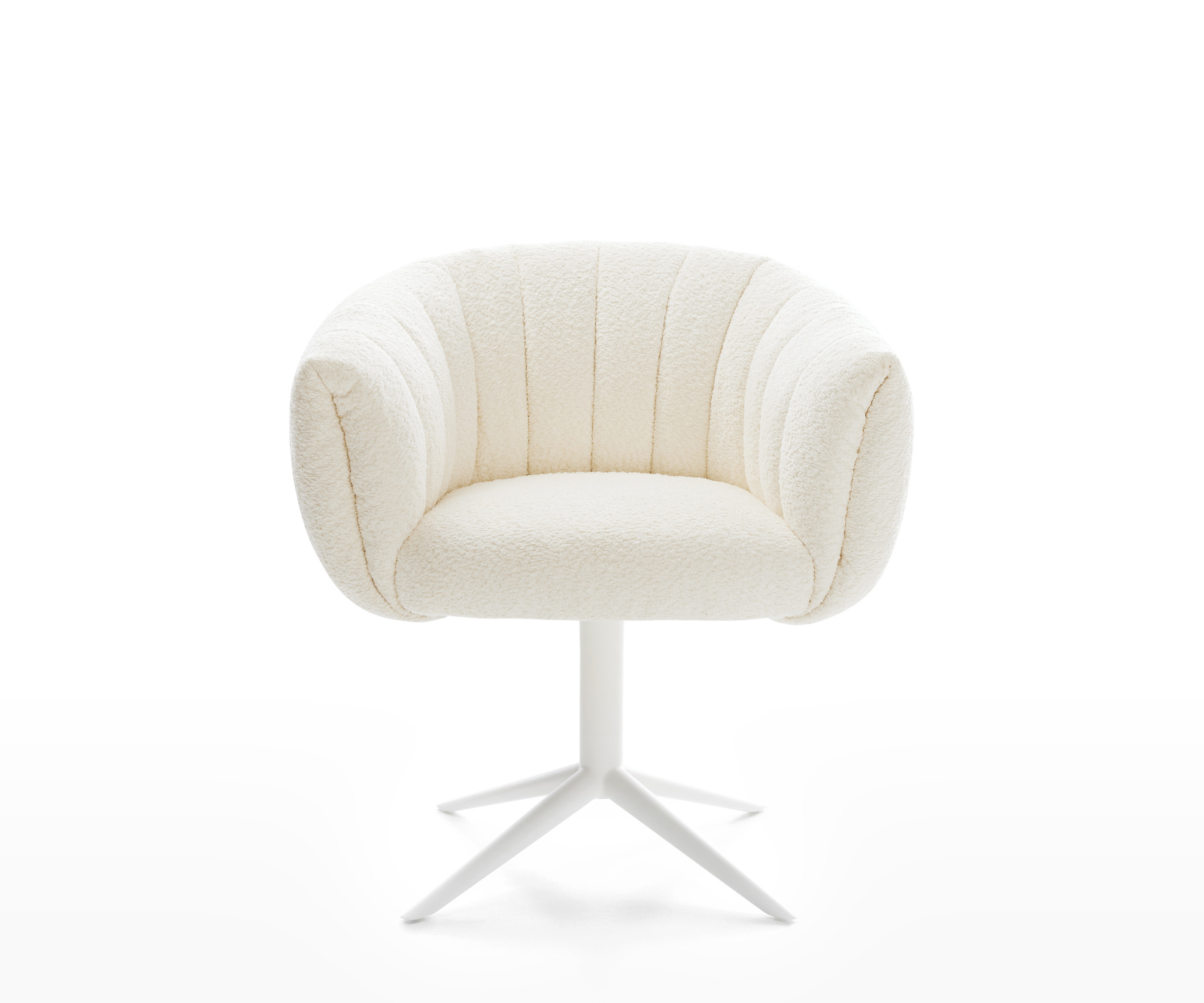 Elegantní bouclé látka je obzvlášť měkká a příjemná na dotek, zároveň však odolná a snadno udržovatelná. Září v teplém bílém odstínu a v každé jídelně vytváří nadčasově krásné akcenty.
