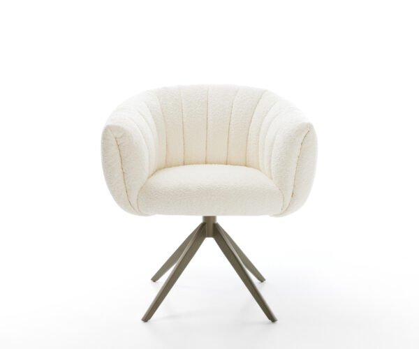 Elegantní bouclé látka je obzvlášť měkká a příjemná na dotek, zároveň však odolná a snadno udržovatelná. Září v teplém bílém odstínu a v každé jídelně vytváří nadčasově krásné akcenty.