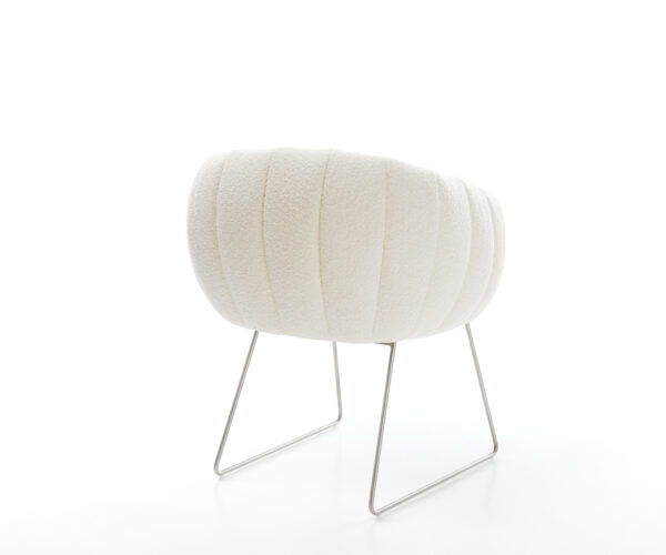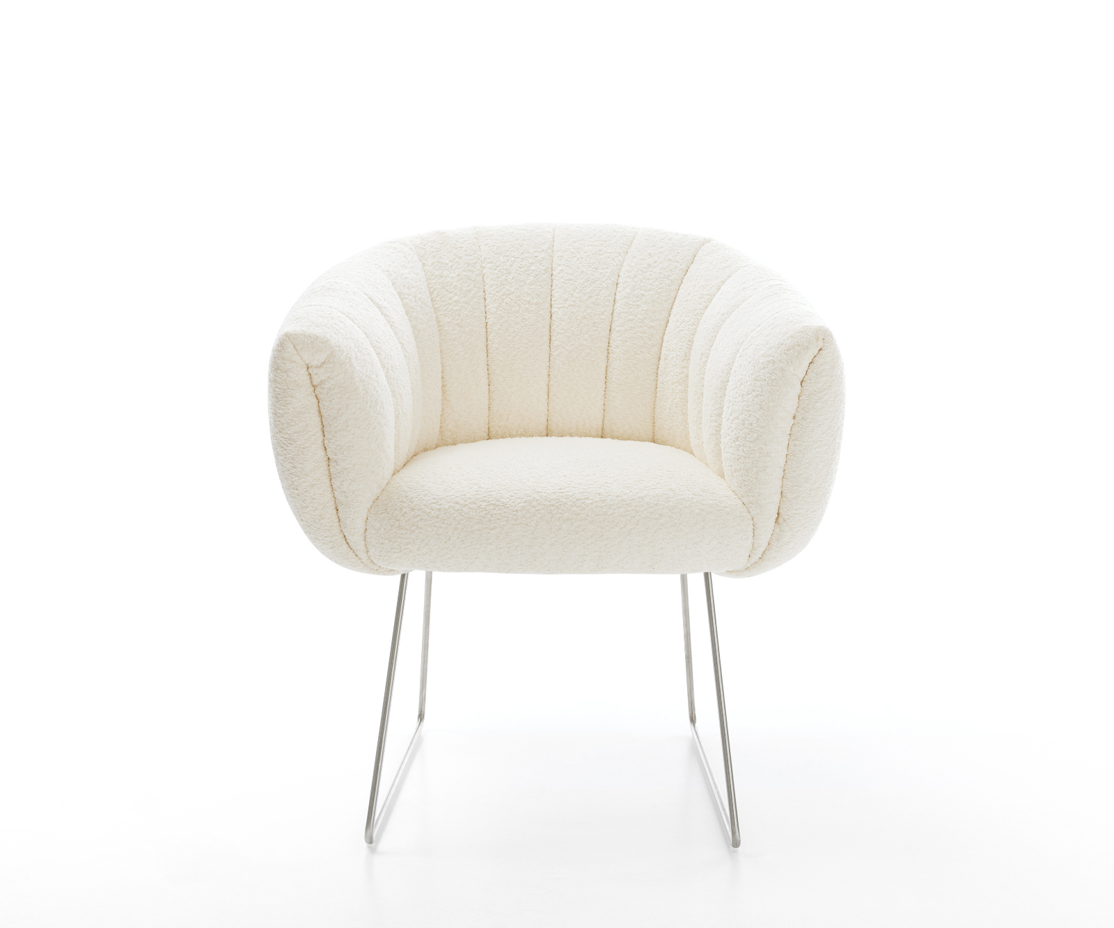 Elegantní látka bouclé je obzvlášť měkká a příjemná na dotek, zároveň však odolná a snadno udržovatelná. Září v teplém bílém odstínu a v každé jídelně vytváří nadčasově krásné akcenty.