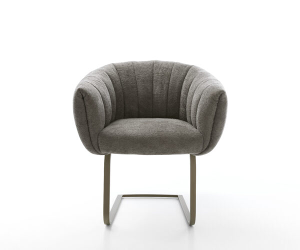 Tato židle zaujme vysoce kvalitním potahem z bouclé soft v teplém tmavě béžovém odstínu schlamm. Jemná struktura a klidná barva propůjčují nábytku moderní, útulný vzhled – ideální do jídelny nebo čtecího koutku.