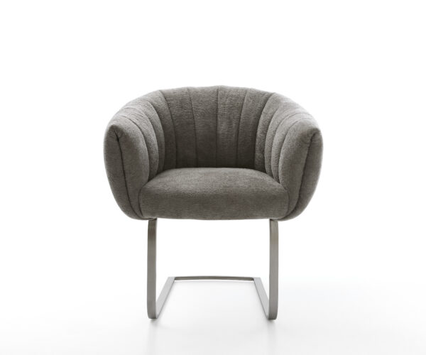 Tato židle zaujme kvalitním potahem z bouclé soft v teplém tmavě béžovém odstínu Schlamm. Jemná struktura a klidná barva propůjčují nábytku moderní a útulný vzhled – ideální do jídelny nebo čtecího koutku.