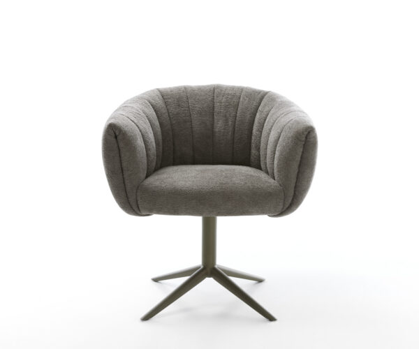 Tato židle zaujme kvalitním potahem z bouclé soft v teplém tmavě béžovém odstínu schlamm. Jemná struktura a klidná barva propůjčují nábytku moderní, útulný vzhled – ideální do jídelny nebo čtecího koutku.