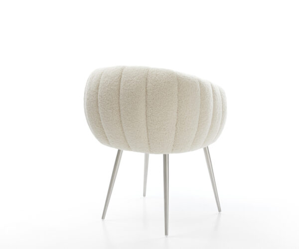 Potah z měkké teddy látky v béžové barvě zajišťuje obzvlášť příjemný pocit při sezení. Měkká tkanina přináší útulnost a styl ke stolu – ideální pro domácí atmosféru.