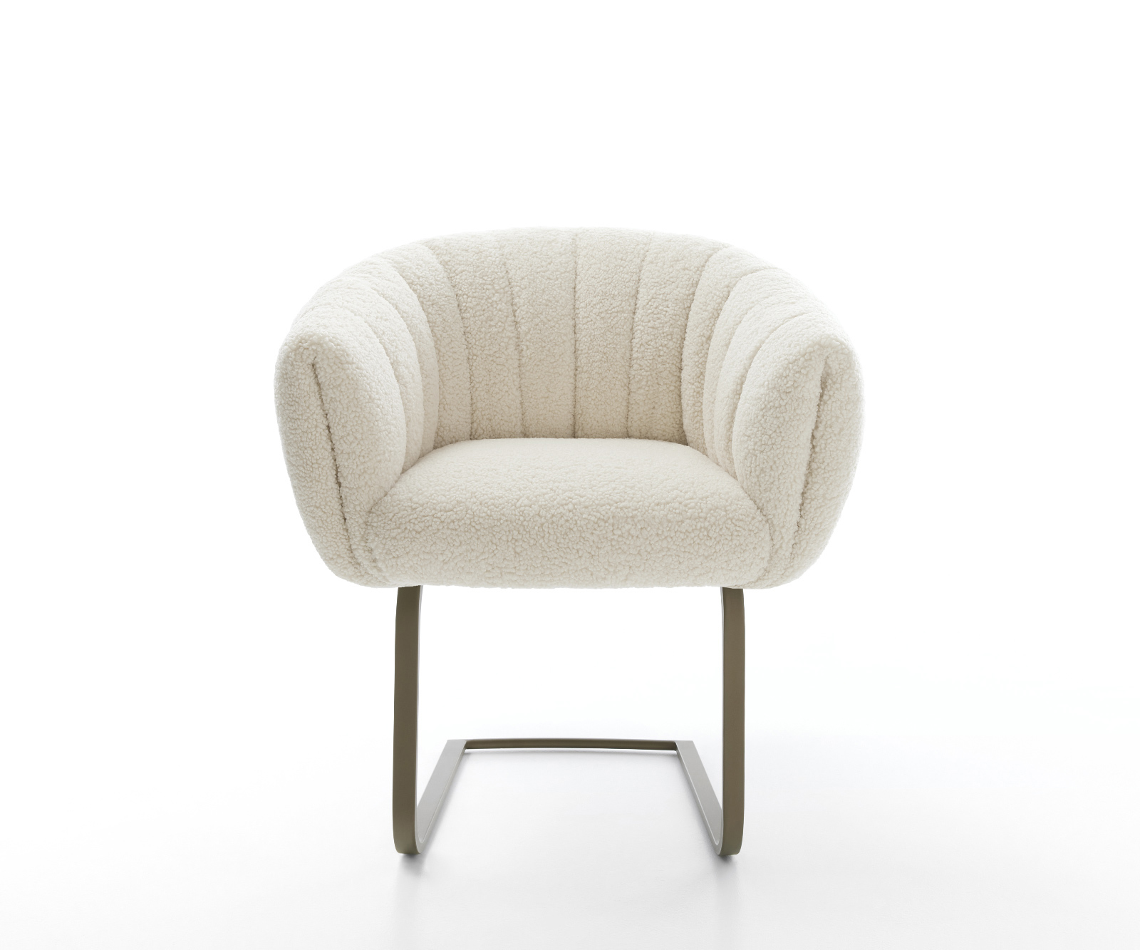 Potah z hebké teddy látky v béžové barvě zajišťuje obzvlášť příjemný pocit při sezení. Měkký materiál přináší k jídelnímu stolu útulnost a styl – ideální pro domácí atmosféru.
