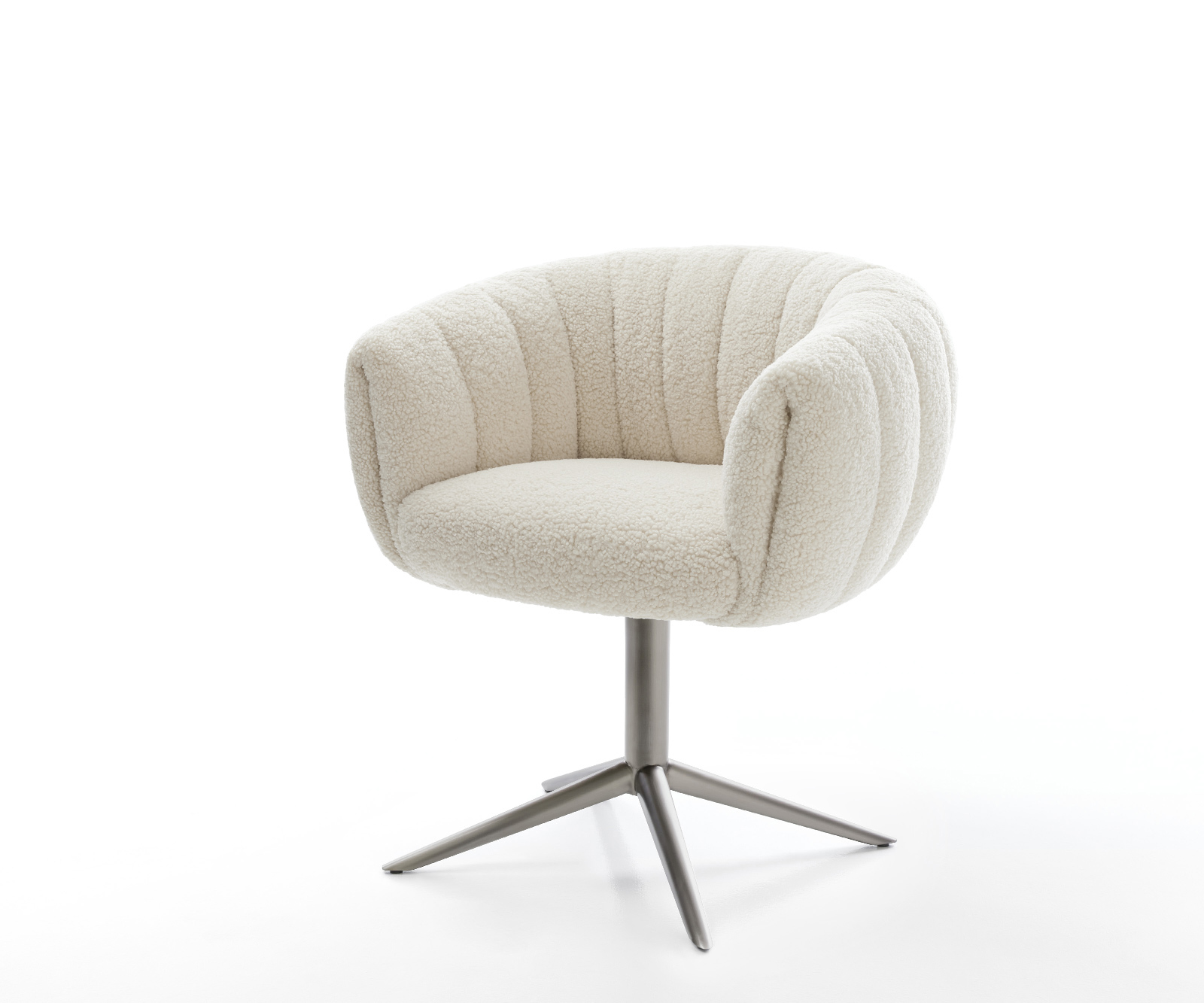 Potah z hebké teddystofové látky v béžové barvě zajišťuje obzvlášť příjemný pocit při sezení. Měkká látka přináší ke stolu útulnost a styl – ideální pro domácí atmosféru.