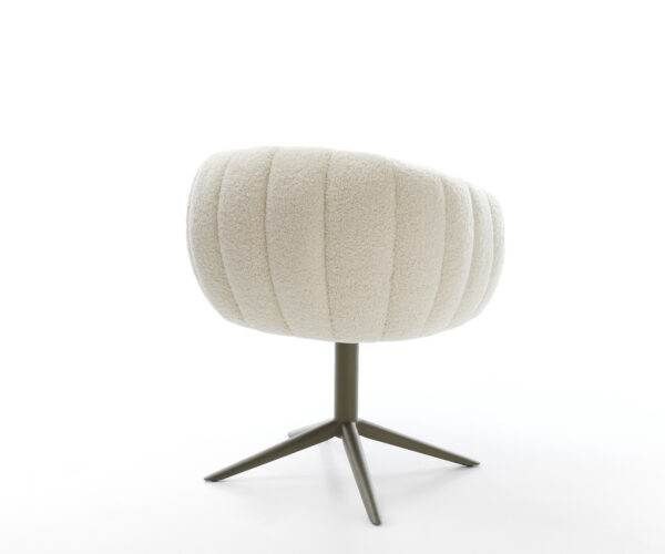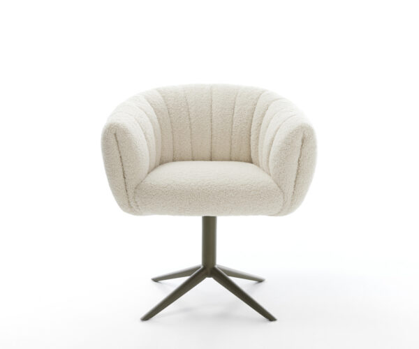 Potah z hebké teddy látky v béžové barvě zajišťuje obzvlášť příjemný pocit při sezení. Měkká tkanina přináší pohodlí a styl k jídelnímu stolu – ideální pro útulnou atmosféru.