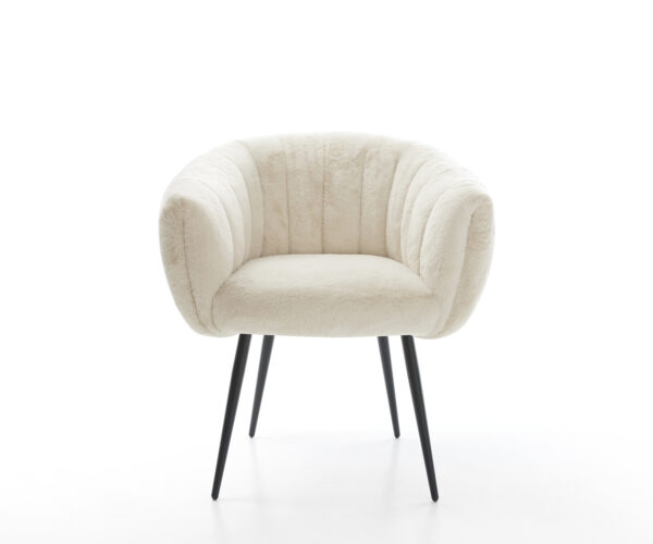 Ušlechtilý plyšový potah v jemné krémově bílé barvě propůjčuje židli zvlášť elegantní charisma. Měkký povrch nabízí nejvyšší komfort sezení – ideální pro moderní jídelní a obytné prostory s kvalitním vybavením.