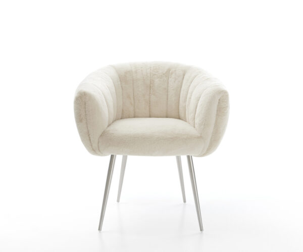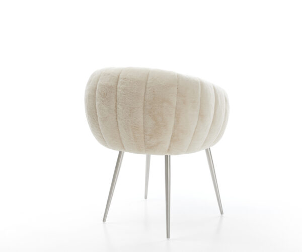 Ušlechtilý plyšový potah v jemné krémově bílé barvě propůjčuje židli obzvlášť elegantní charisma. Měkký povrch nabízí nejvyšší komfort sezení – ideální pro moderní jídelní a obytné prostory s kvalitním zařízením.