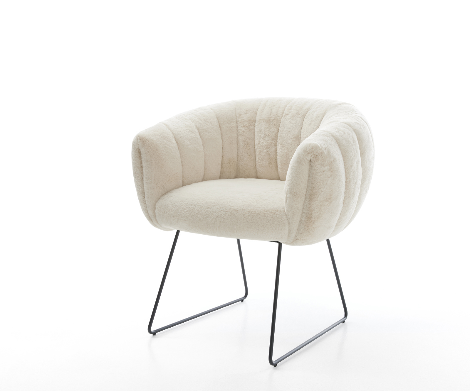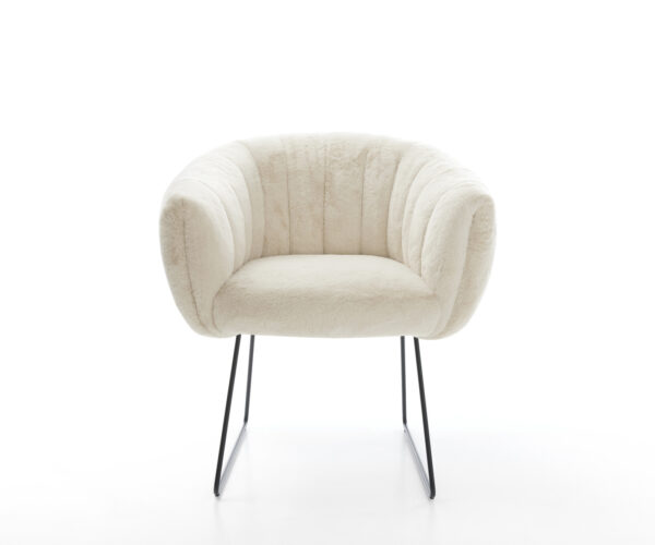 Ušlechtilý plyšový potah v jemné krémově bílé barvě propůjčuje židli obzvlášť elegantní charisma. Měkký povrch nabízí nejvyšší komfort sezení – ideální pro moderní jídelní a obytné prostory s kvalitním vybavením.