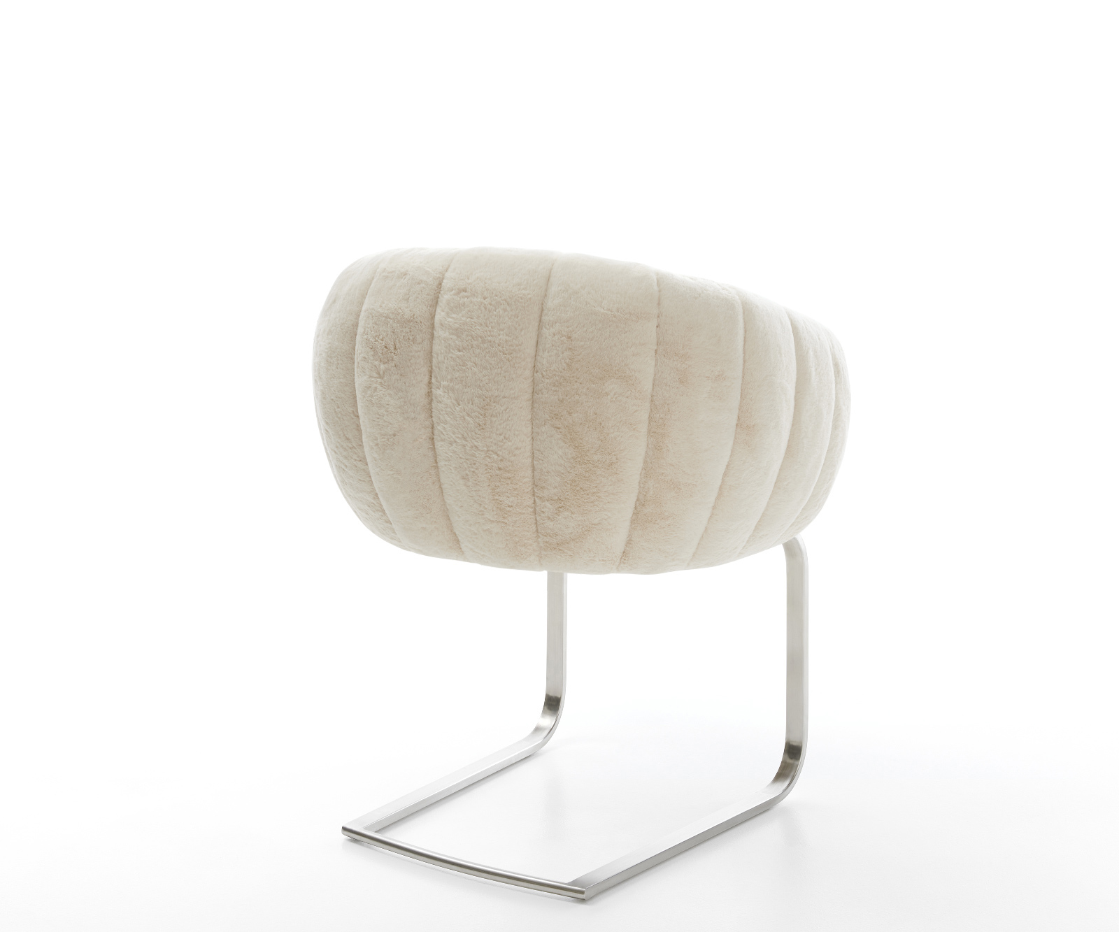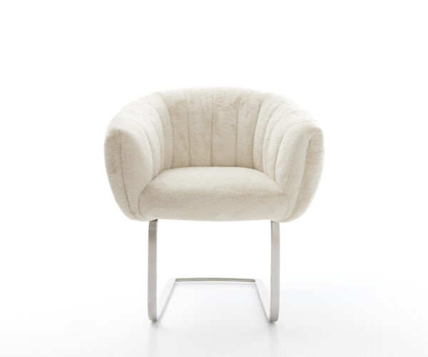 Ušlechtilý plyšový potah v jemné krémově bílé barvě propůjčuje židli obzvlášť elegantní charisma. Měkký povrch nabízí nejvyšší komfort sezení – ideální pro moderní jídelní a obytné prostory s kvalitním vybavením.