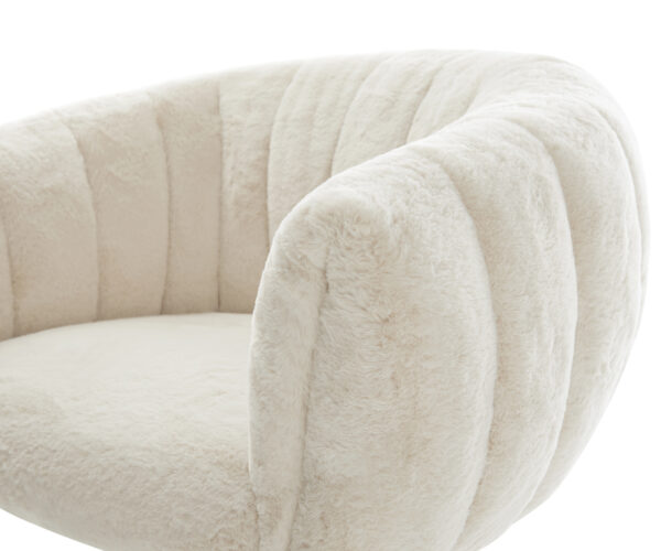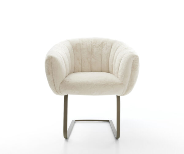 Ušlechtilý plyšový potah v jemné krémově bílé barvě dodává židli obzvlášť elegantní charisma. Měkký povrch nabízí nejvyšší komfort sezení – ideální pro moderní jídelní a obytné prostory s kvalitním vybavením.
