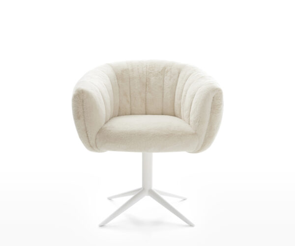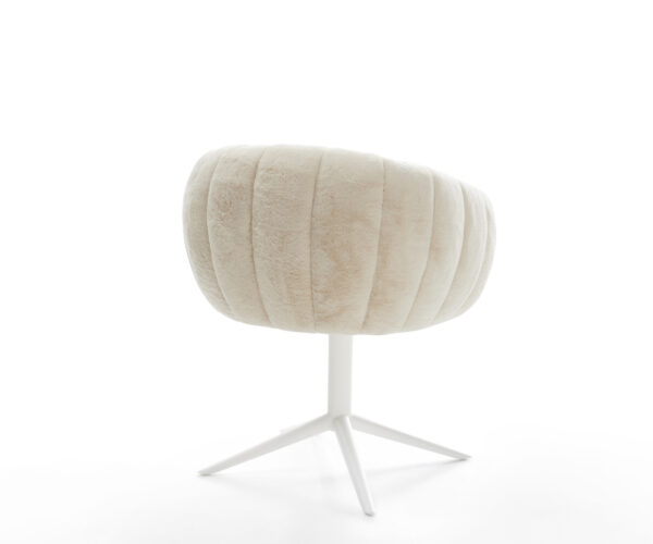 Ušlechtilý plyšový potah v jemné krémově bílé barvě propůjčuje židli zvlášť elegantní charisma. Měkký povrch nabízí nejvyšší komfort sezení – ideální pro moderní jídelní a obytné prostory s kvalitním zařízením.