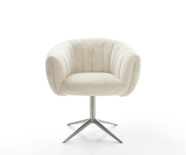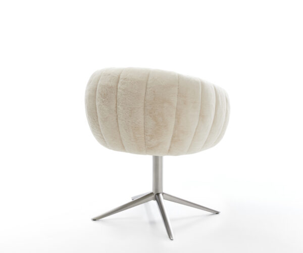 Ušlechtilý plyšový potah v jemné krémově bílé barvě propůjčuje židli zvlášť elegantní charisma. Měkký povrch nabízí nejvyšší komfort sezení – ideální pro moderní jídelní a obytné prostory s kvalitním vybavením.