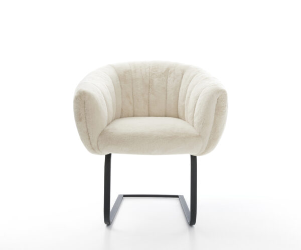 Ušlechtilý plyšový potah v jemné krémově bílé barvě propůjčuje židli zvlášť elegantní charisma. Měkký povrch nabízí nejvyšší komfort sezení – ideální pro moderní jídelní a obytné prostory s kvalitním vybavením.