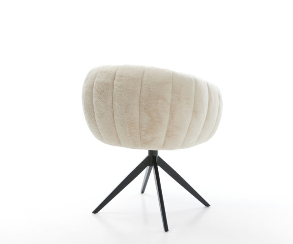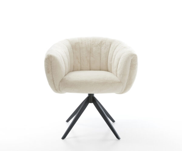 Ušlechtilý plyšový potah v jemné krémově bílé barvě propůjčuje židli obzvlášť elegantní charisma. Jemný povrch nabízí nejvyšší komfort sezení – ideální pro moderní jídelny a obytné prostory s kvalitním vybavením.