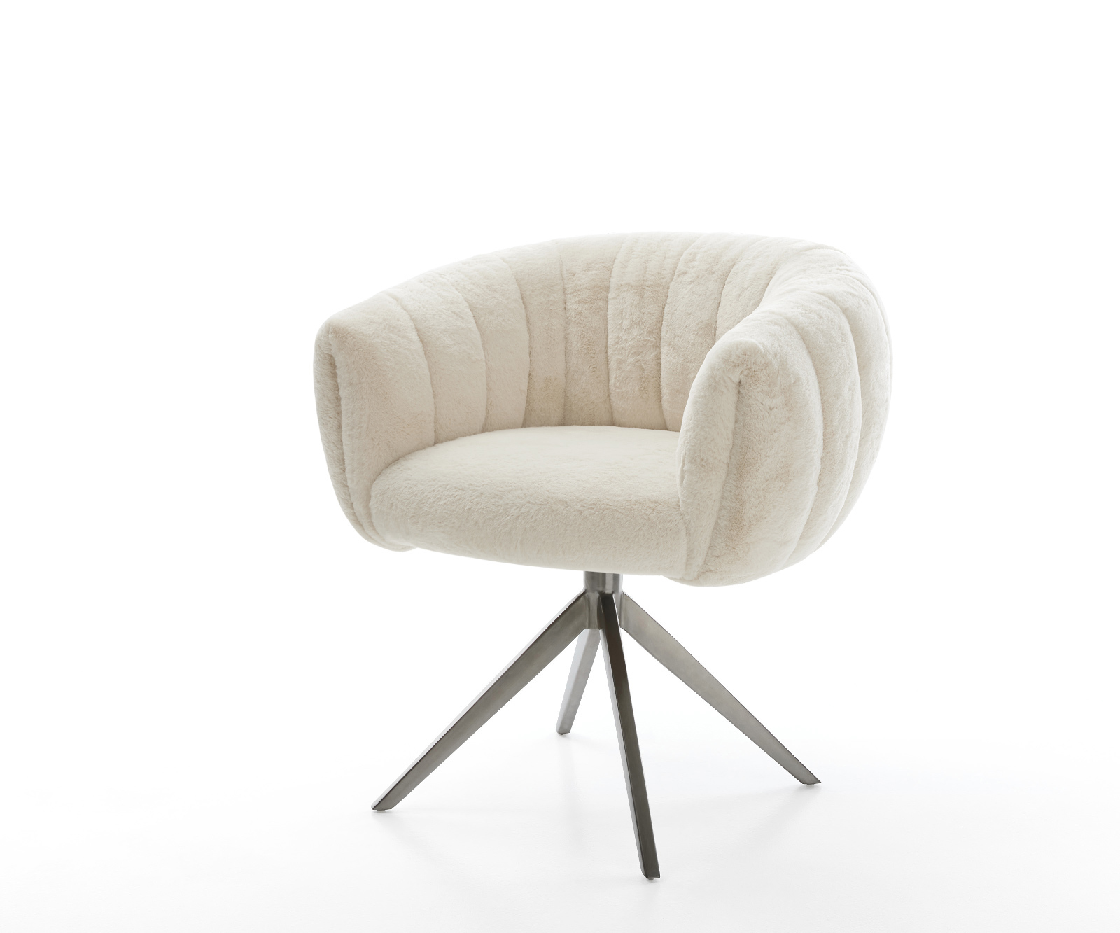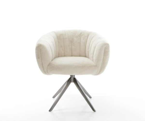 Ušlechtilý plyšový potah v jemné krémově bílé barvě propůjčuje židli zvlášť elegantní charisma. Měkký povrch nabízí nejvyšší komfort sezení – ideální pro moderní jídelní a obytné prostory s kvalitním vybavením.