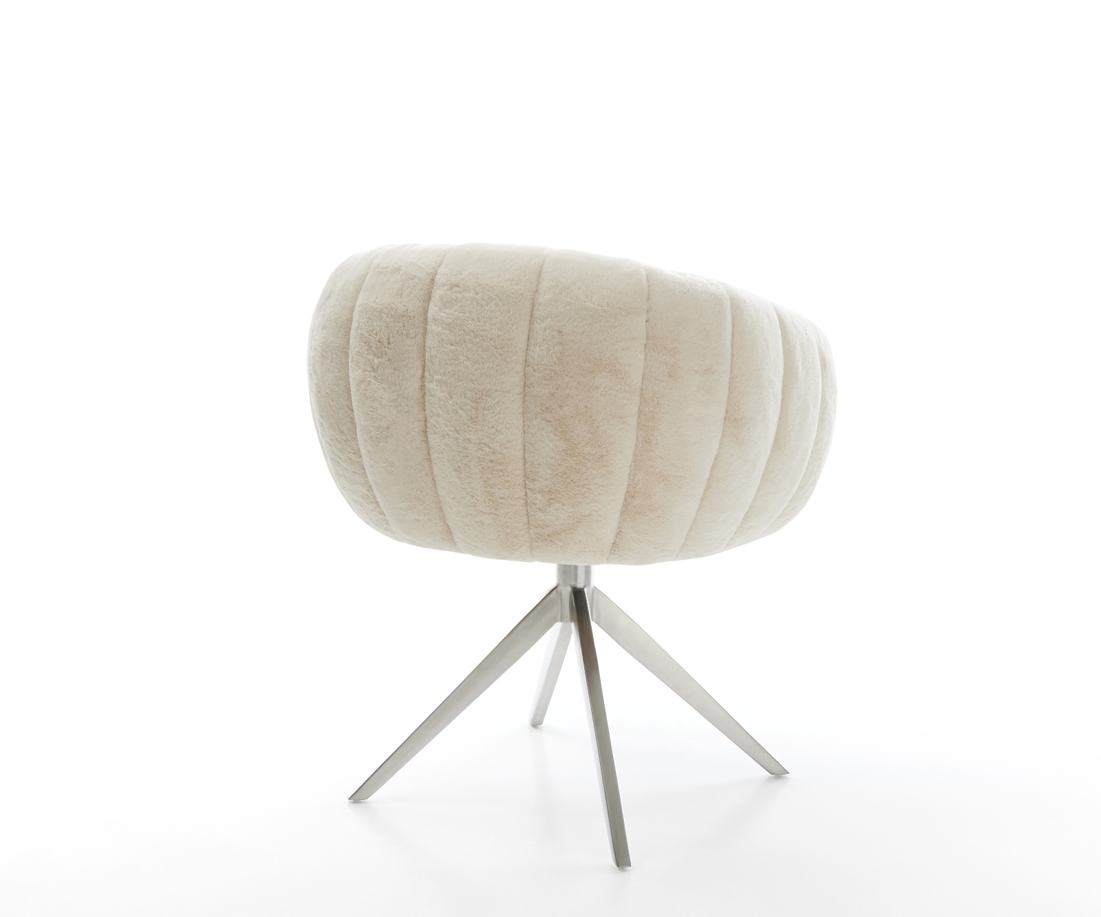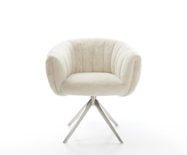 Ušlechtilý plyšový potah v jemné krémově bílé barvě propůjčuje židli obzvlášť elegantní charisma. Měkký povrch nabízí nejvyšší komfort sezení – ideální pro moderní jídelní a obytné prostory s kvalitním vybavením.