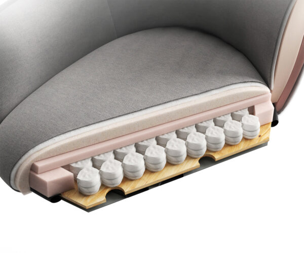 - Čalounění z nosag pružiny, bodově elastického taštičkového pružinového jádra, diolenové výztuže s kvalitní pěnovou vrstvou s hustotou 40 kg/m3