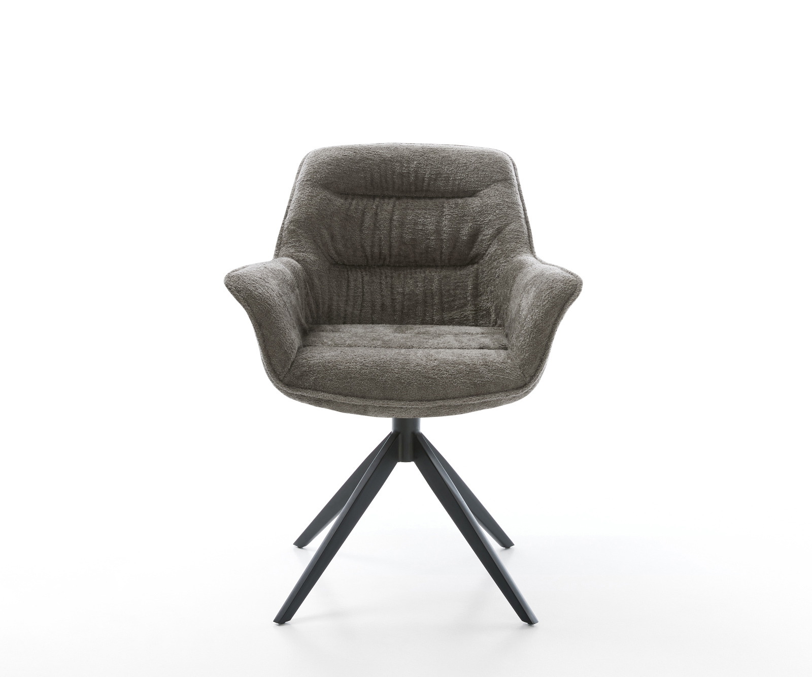 Židle zaujme kvalitním potahem z bouclé v teplém tmavě béžovém odstínu. Jemná struktura a klidná barva dodávají nábytku moderní a útulný vzhled – ideální do jídelny nebo čtecího koutu.