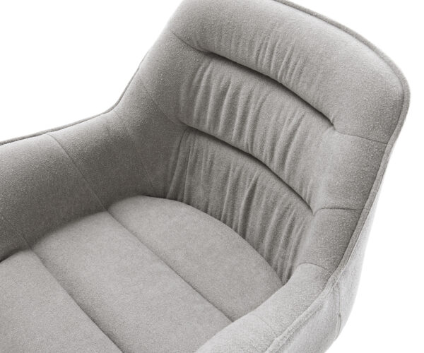 Robustní strukturovaná látka v jemné šedé barvě není jen odolná, ale zajišťuje také decentní a stylový vzhled. Ideální pro intenzivně využívané jídelny s nároky na design a každodenní použitelnost.