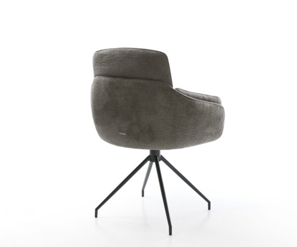 Tato židle zaujme kvalitním potahem z bouclé soft v teplém tmavě béžovém (schlamm) odstínu. Jemná struktura a klidná barva dodávají nábytku moderní, útulné charisma – ideální do jídelny nebo čtecího koutku.