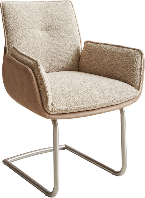 Zajímavá kombinace materiálů z mikrovlákna na vnější straně a bouclé dělá z jídelní židle opravdový must-have v každém vkusně zařízeném jídelním prostoru. Použití dvou materiálů je vizuálně obzvlášť atraktivní, ať už jako samostatný kus nebo jako součást sedací sestavy.
