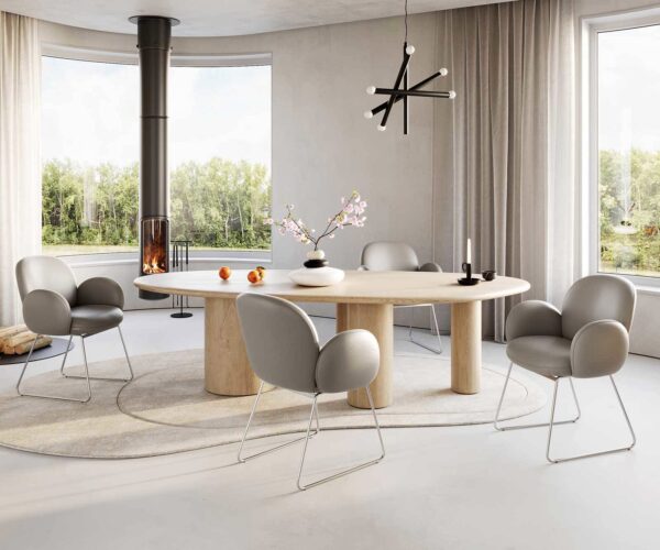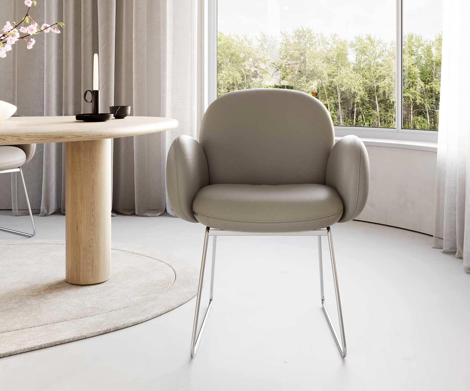 Jídelní židle Nube s područkami pravá kůže schlamm – systém židlí od DELIFE
