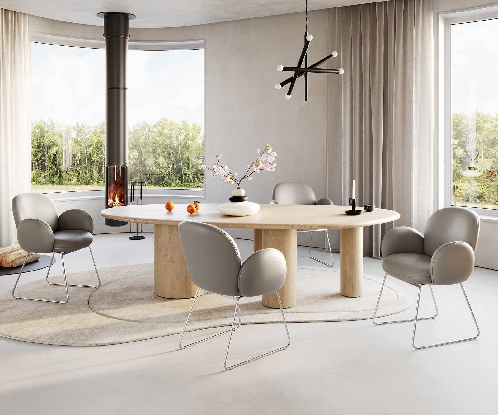 Moderně zaoblená jídelní židle Nube-Flex s područkami vyzařuje skutečný životní styl ve tvé jídelně a díky extra tlustému polstrování s kvalitními taštičkovými pružinami ti poskytuje jedinečný komfort sezení. Ergonomický design v tvaru skořepiny šetří tvá záda. Optické oddělení sedáku, opěradla a područek dává židli Nube-Flex nezaměnitelný vzhled, který z ní činí skutečný designový klenot.