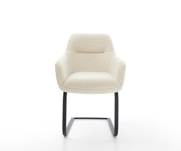 Potah z měkké plyšové látky Teddy v béžové barvě zajišťuje obzvlášť příjemný pocit při sezení. Měkká látka přináší útulnost a styl ke jídelnímu stolu – ideální pro domácí atmosféru.
