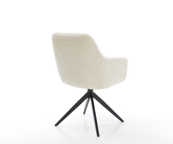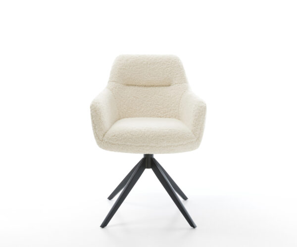 Čalounění z měkké plyšové látky teddy v béžové barvě poskytuje obzvlášť příjemný pocit při sezení. Měkká látka přináší útulnost a styl k jídelnímu stolu – ideální pro domácí atmosféru.