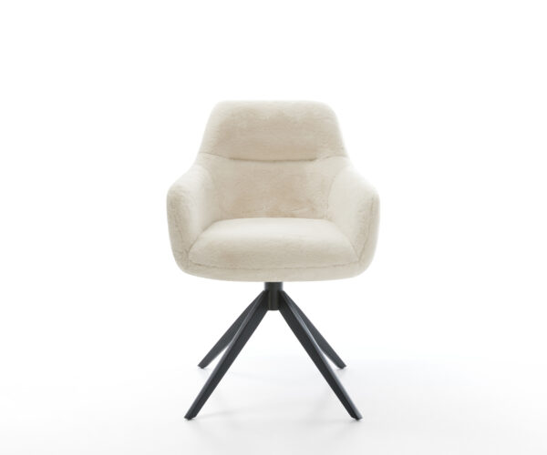 Ušlechtilý plyšový potah v jemné krémově bílé barvě dodává židli zvlášť elegantní charisma. Měkký povrch nabízí nejvyšší komfort sezení – ideální pro moderní jídelny a obývací prostory s kvalitním vybavením.
