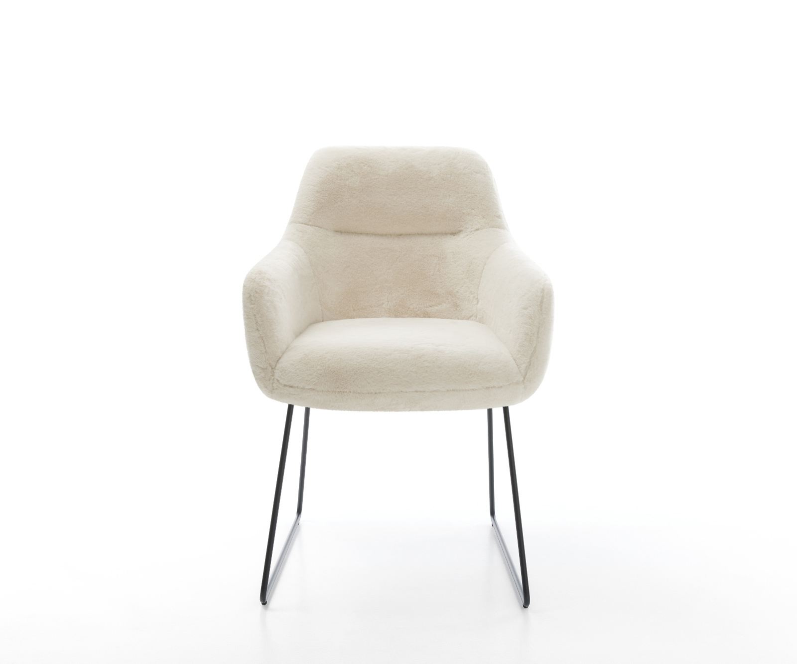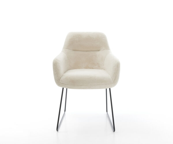 Ušlechtilý plyšový potah v jemné krémově bílé barvě dodává židli obzvlášť elegantní charisma. Měkký povrch nabízí nejvyšší komfort sezení – ideální pro moderní jídelny a obývací prostory s kvalitním vybavením.