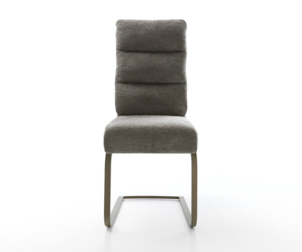Tato židle zaujme kvalitním potahem z bouclé soft v teplém tmavě béžovém (schlamm) odstínu. Jemná struktura a klidná barva dodávají nábytku moderní a útulné charisma – ideální do jídelny nebo čtecího koutku.