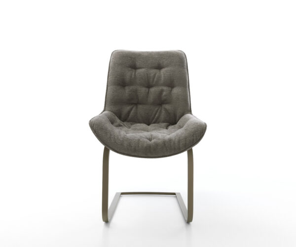 Tato jídelní židle zaujme kvalitním potahem z bouclé soft v teplém tmavě béžovém odstínu. Jemná struktura a klidná barva dodávají nábytku moderní, útulné charisma – ideální do jídelny nebo čtecího koutku.