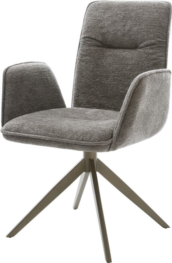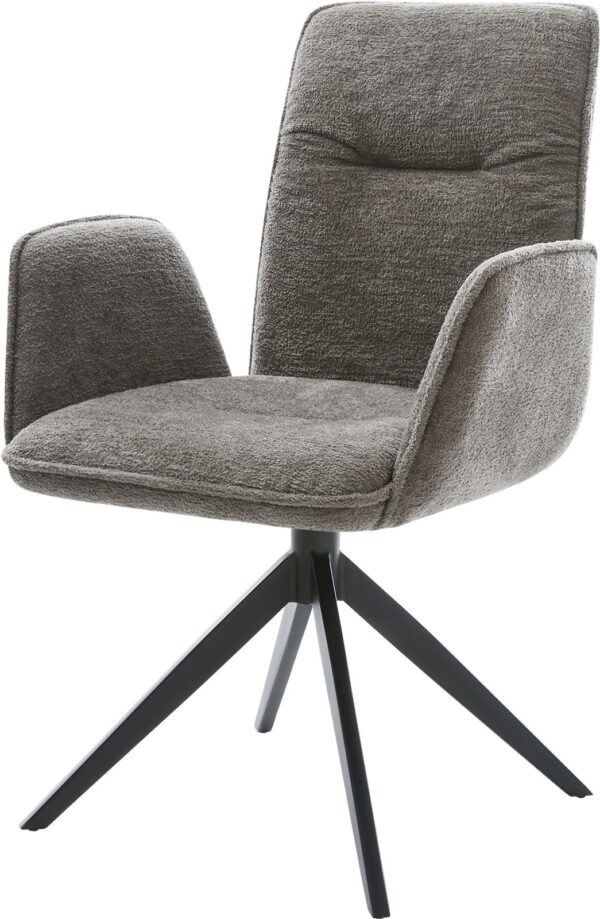 Tato jídelní židle přesvědčuje kvalitním potahem z bouclé v teplém tmavě béžovém odstínu. Jemná struktura a klidná barva dodávají nábytku moderní a útulný vzhled – ideální do jídelny nebo čtecího koutku.