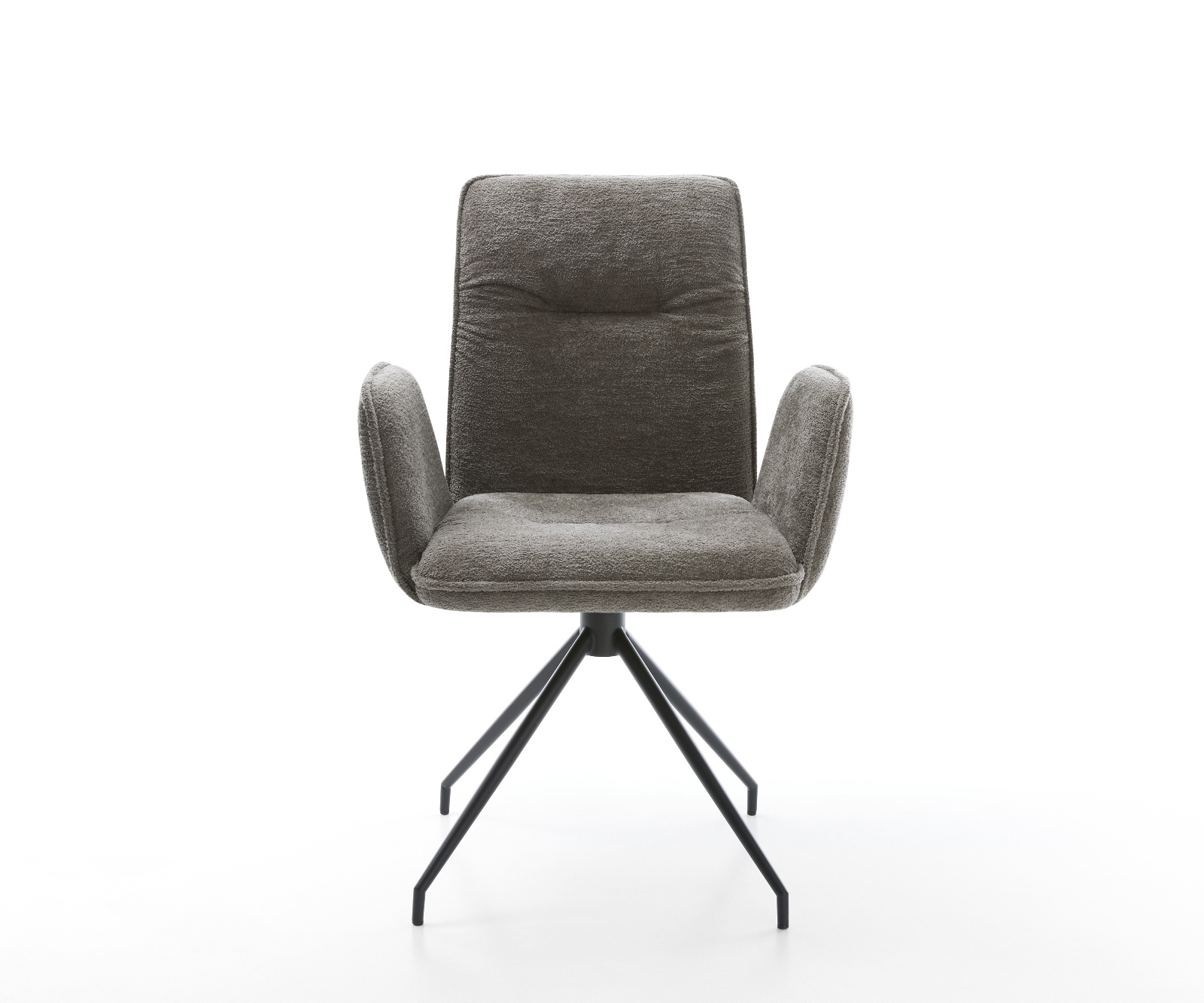 Tato jídelní židle přesvědčuje vysoce kvalitním potahem z bouclé soft v teplém tmavě béžovém odstínu. Jemná struktura a klidná barva dodávají nábytku moderní a útulný vzhled – ideální do jídelny nebo čtecího koutu.