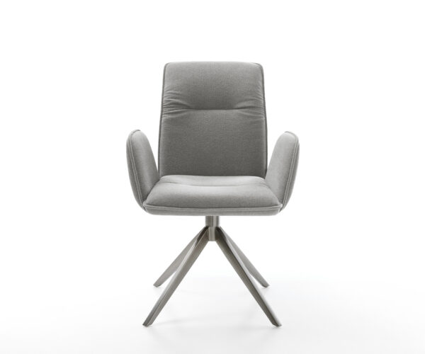 Robustní strukturální látka v jemné šedé barvě není jen odolná, ale také poskytuje decentní a stylový vzhled. Ideální pro intenzivně využívané jídelní prostory s nároky na design a každodenní použitelnost.