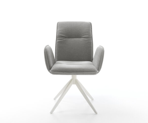 Jídelní židle Vinja zaujme svým ležérním potahem a elegantním lemováním. Volně stojící područky z ní dělají obzvlášť extravagantní designový klenot ve tvé domácnosti. Kvalitně zpracovaná sedací skořepina je kompletně čalouněná a zajišťuje příjemný pocit při sezení.